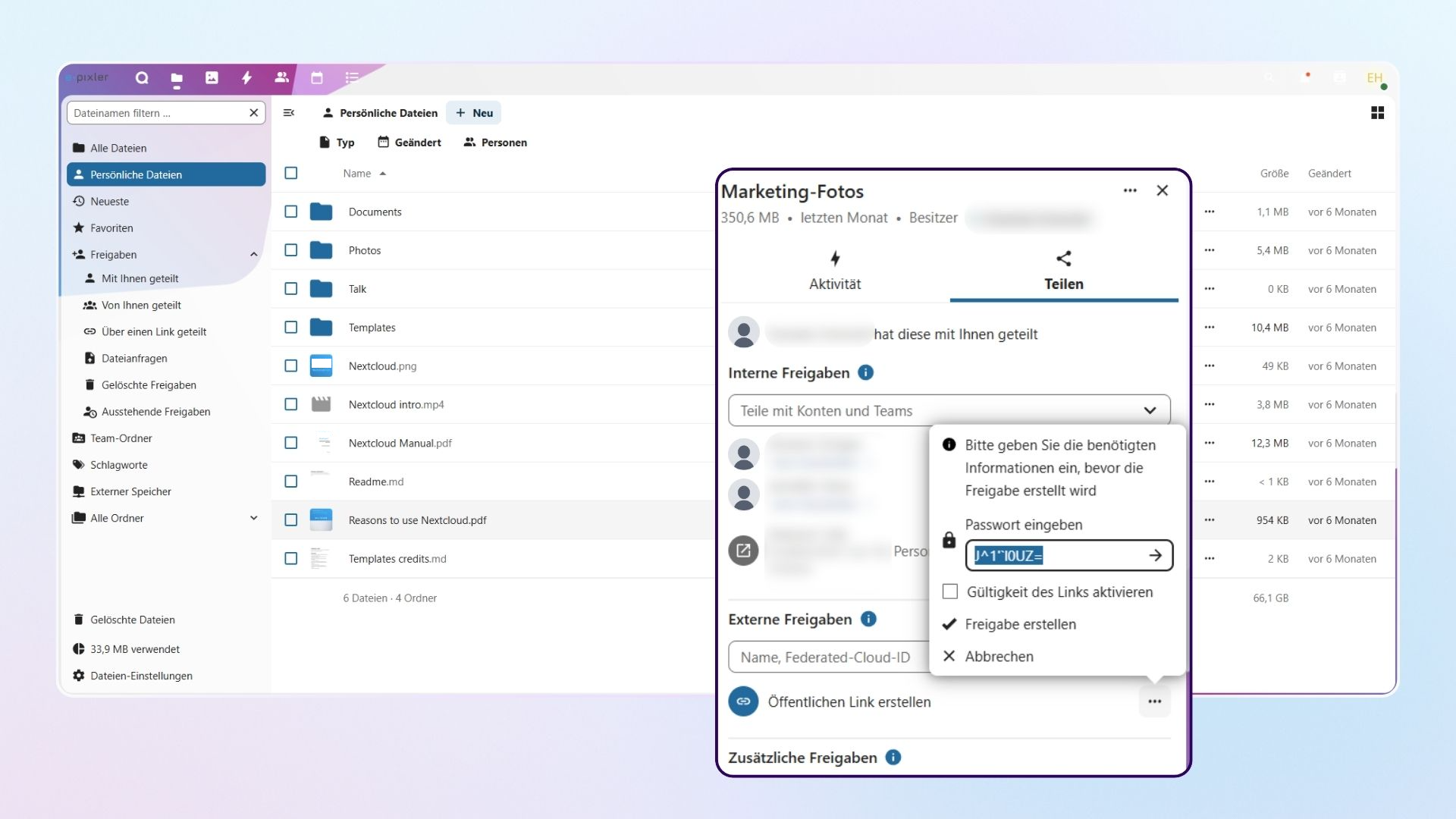 Mit Nextcloud teilen Sie Ordner und Dateien schnell, sicher und benutzerfreundlich.